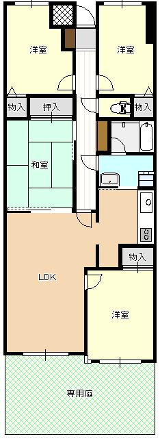 | 設備 | バス・トイレ別、シャワー、システムキッチン、給湯、S.ドレッサー、CATV、BSアンテナ、オートロック、専用庭、バルコニー、フローリング、駐輪場、ウォシュレット、角部屋、エレベーター、対面or独立キッチン、インターネット対応、駐車場 | ||