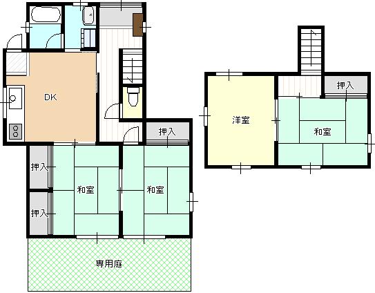 | 設備 | バス・トイレ別、シャワー、給湯、専用庭、駐輪場、バイク置き場、ペット飼育可 | ||