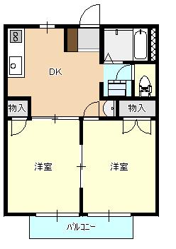 駐車場 有り5250円/月 間取り(広さ) 2DK